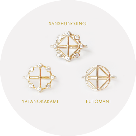 その3つを重ねた「サンシュノジンギ(三種の神器)」というオリジナルをプラスした定番デザインもございます。